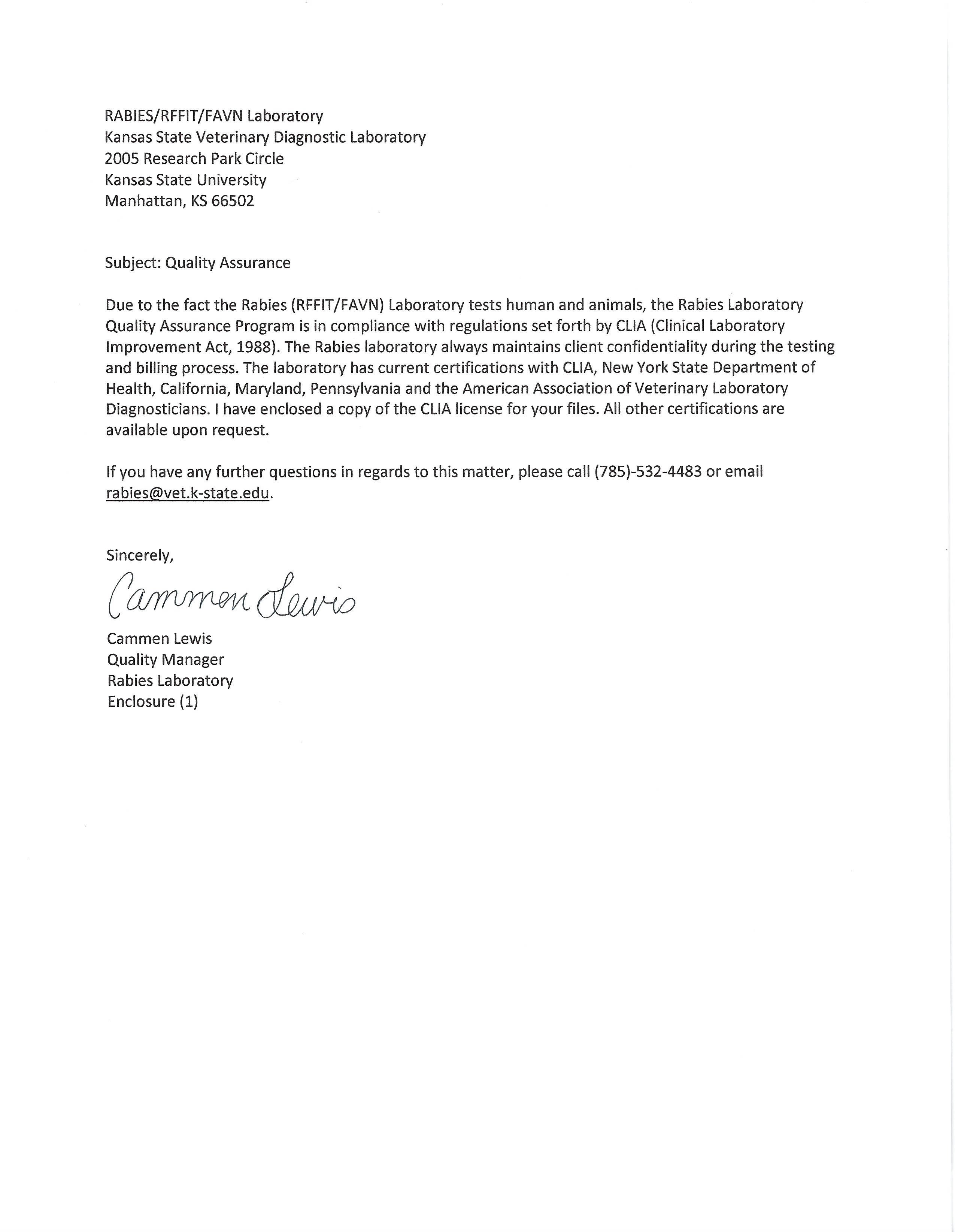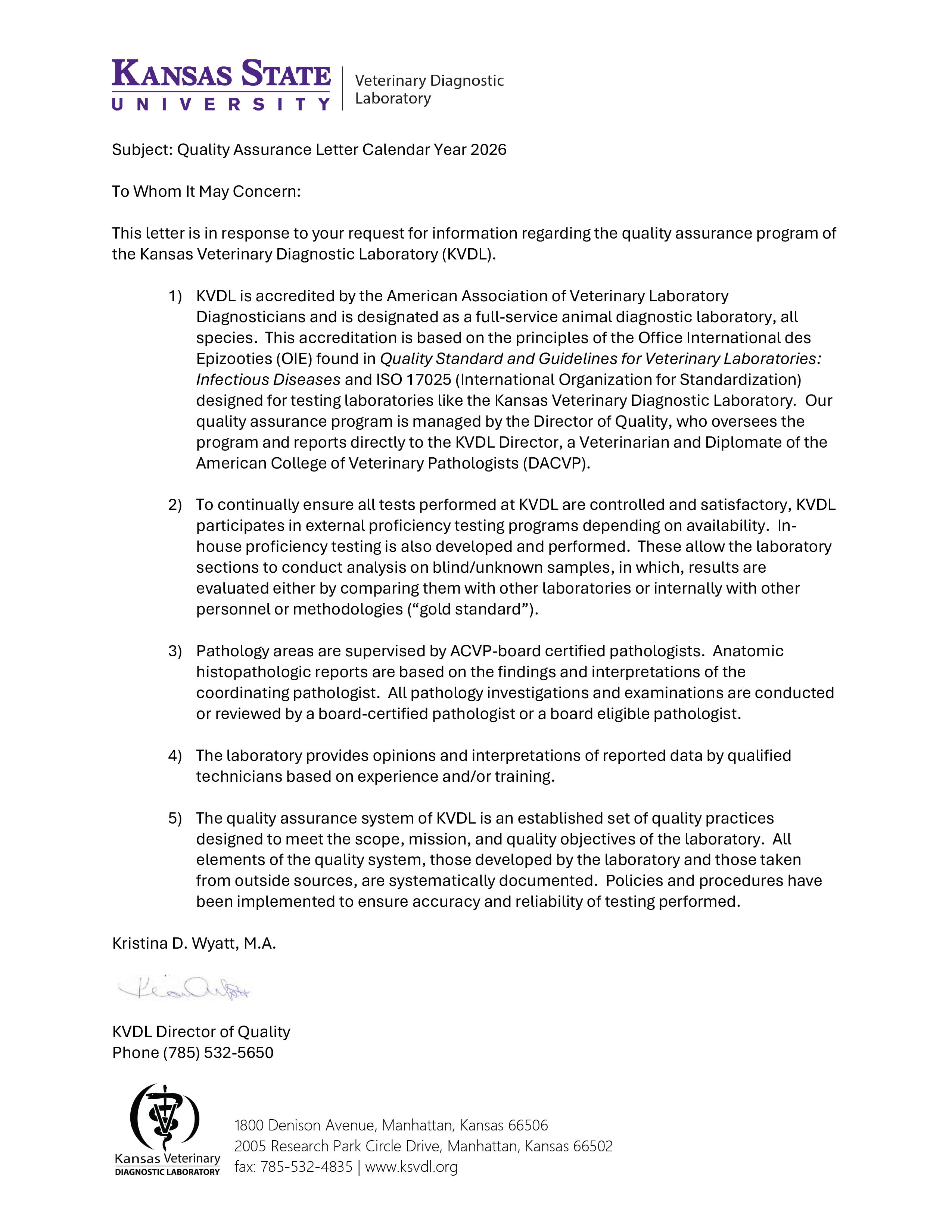 Quality contact information: VDLQualityManager@vet.k-state.edu